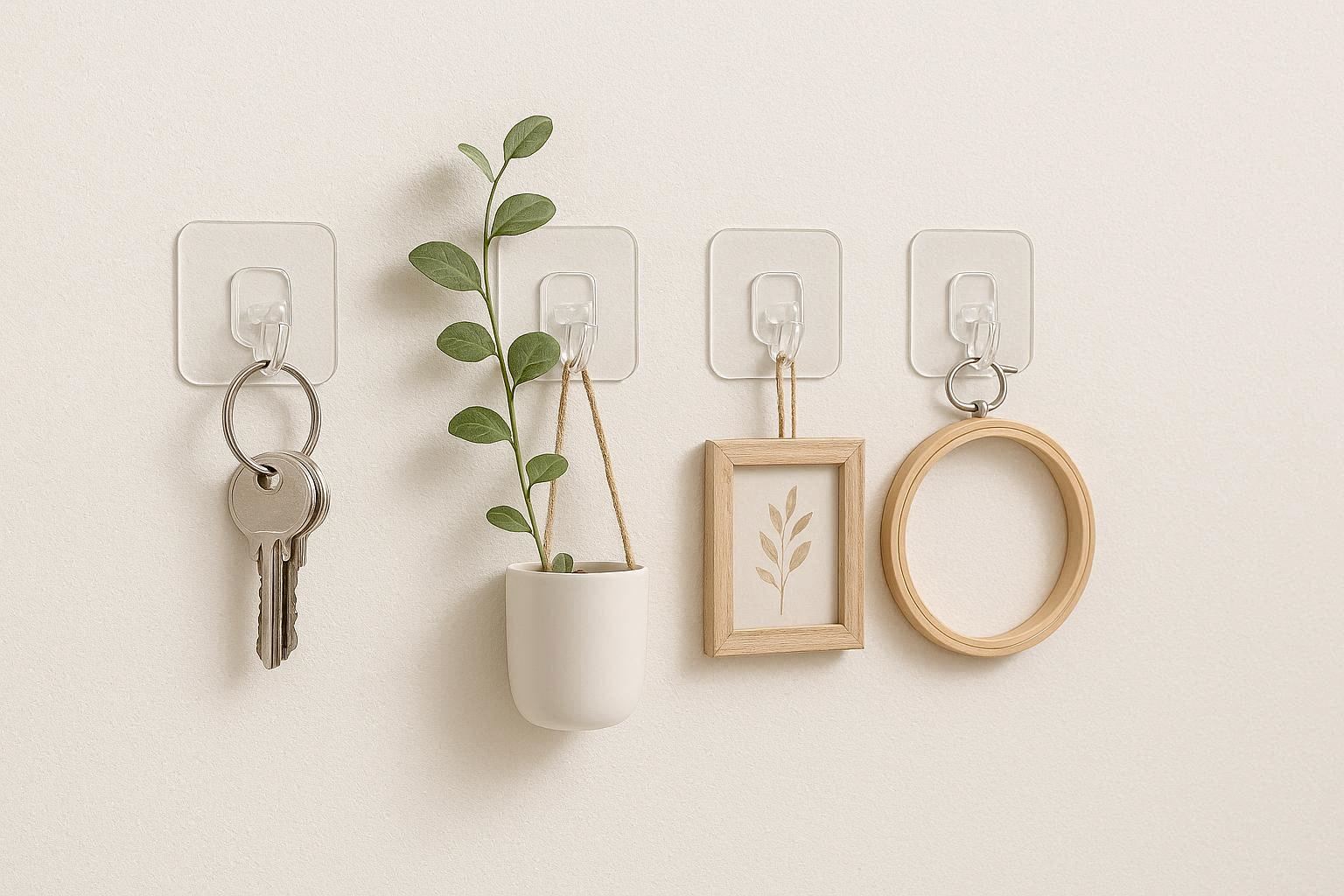 Invisible transparent design blends with walls while supporting 2kg weight. Perfect for lightweight decorations or cables.